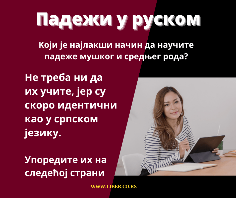 Да ли сте знали да руски и српски језик имају скоро идентичне облике падежа за именице мушког и средњег рода у једнини? Ако нисте, погледајте примере и упоредите два словенска језика. Који падеж се разликује?